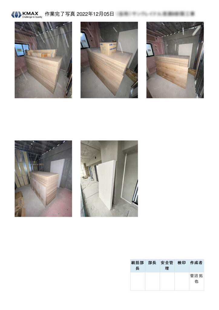 弊社ではさらなる安全管理と作業品質向上への取組みとして、現場毎に以下の3つの報告書をお客様に提出いたします。現場でのKY活動はもちろんですが、作業者から上がってきた現場情報を元に、揚重を熟知した現場管理者によるフィードバックを行っています。注意点を客観的な視点から作業者へ伝えることで未然に破損や事故を防いでいます。また作業完了後はお客様へ荷姿の置き場や置き方が分かるように荷姿の写真を撮影し、送らせていただきます。ご繁忙なご担当者様からは高く評価いただいております。